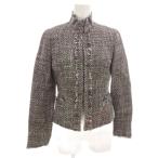 アナイ ANAYI ツイードジャケット スタンドカラー フリンジ 36 総裏地 黒 ブラック 白 ホワイト /GV レディース
