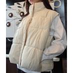 コート アウター 中綿キルトノースリーブフルジップ スタンドカラー ジャケット ベスト レディース