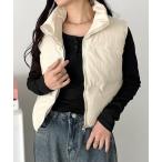 ダウンベスト ベスト スタンドカラーコンパクトショート丈中綿ベスト レディース
