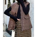 コート アウター 中綿キルトノースリーブフルジップ スタンドカラー ジャケット ベスト レディース
