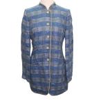 エンポリオアルマーニ EMPORIO ARMANI サマージャケット スタンドカラー チェック ロングブレザー リネン混 38 Mサイズ相当 ブルー k385610