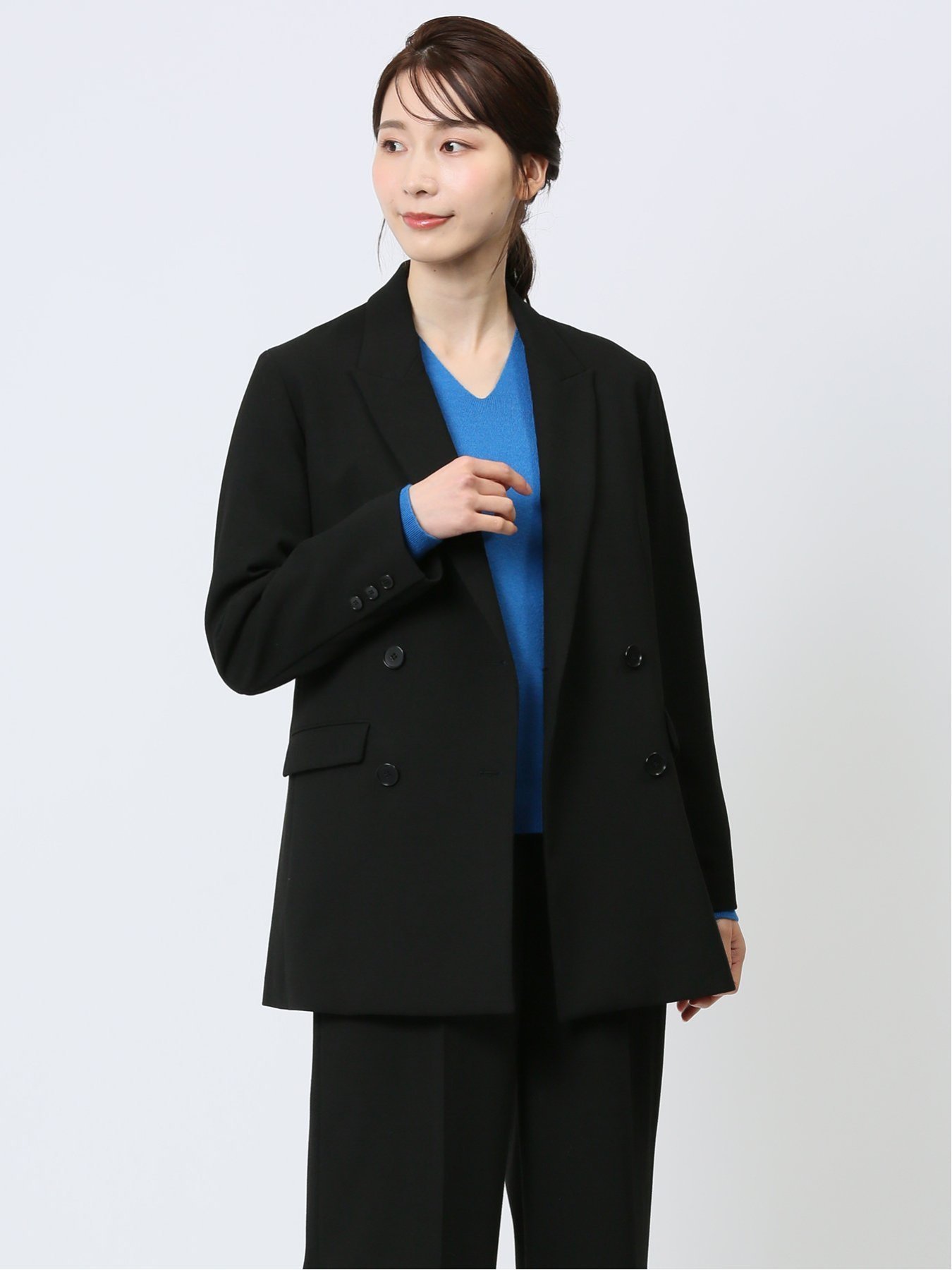 m.f.editorial ストレッチウォッシャブル 黒無地ダブルジャケット(セットアップ可能) タカキュー ジャケット・アウター その他のジャケット・アウター ブラック【送料無料】