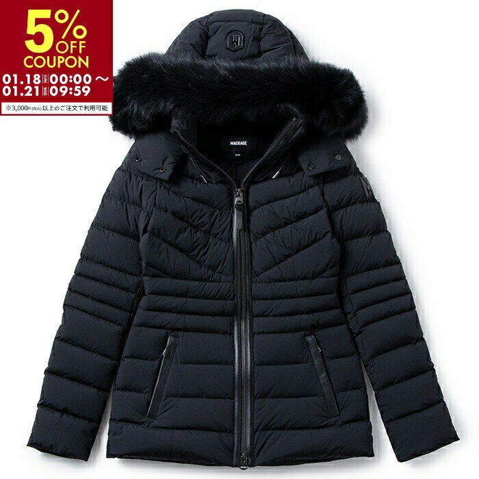 MACKAGE マッカージュ ダウンジャケット PATSY-FR BLACK レディース ダウンコート フード付き 2way フード 取り外し可 ラクーンファー付き ストレッチ 撥水