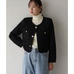 ジャケット ノーカラージャケット 「 ammy. / エイミードット 」 金ボタン ツイード ジャケット レディース