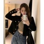 カーディガン 金ボタンツイードショートジャケットカーディガン レディース