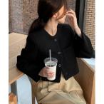 ジャケット ノーカラージャケット ツイードクロップドジャケット レディース レディース