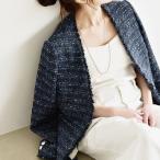 ジャケット ノーカラージャケット ラメミックスツイード セミダブルクルージャケット レディース