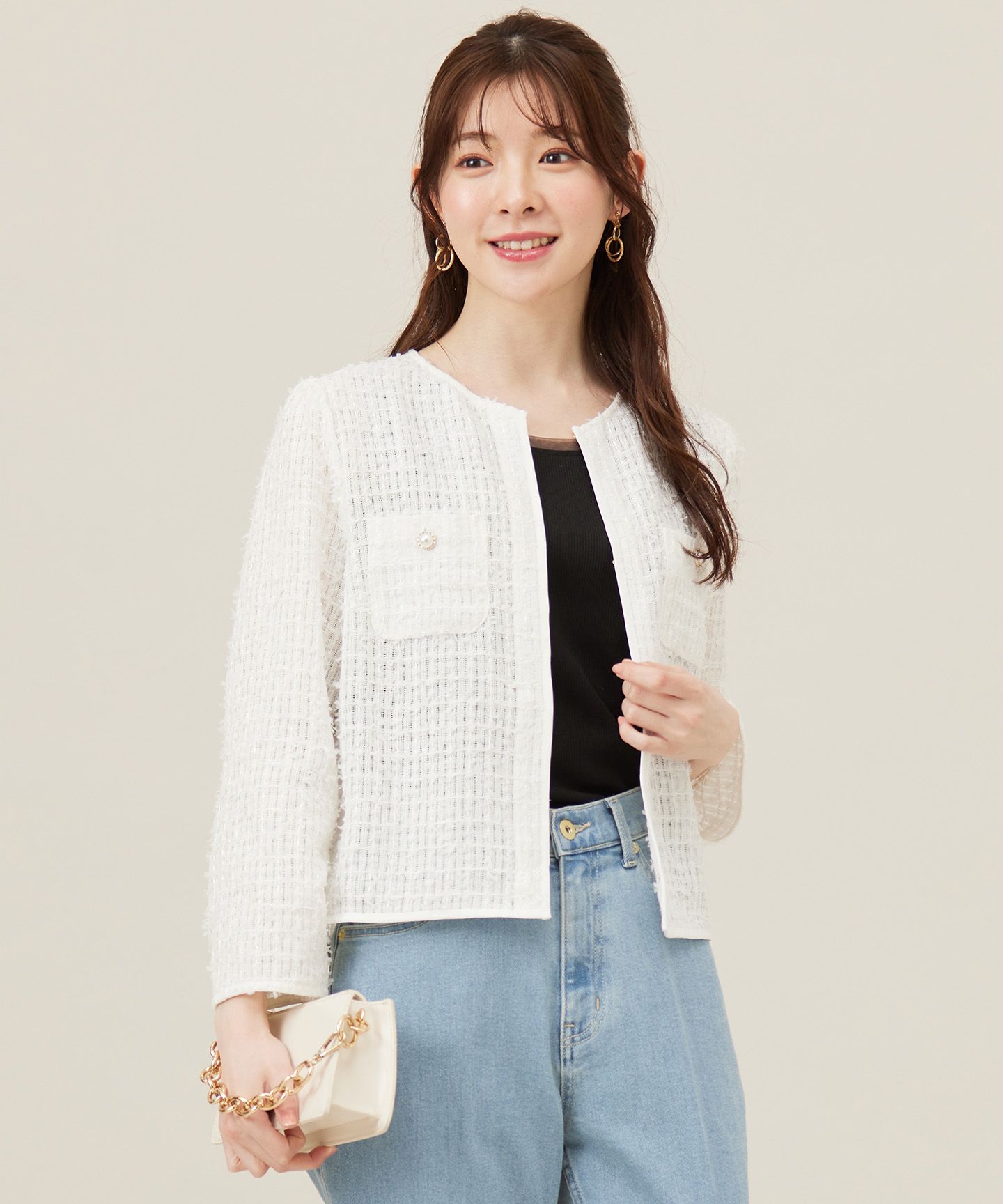 ジャケット ノーカラージャケット ツイードノーカラージャケット ツイードショートジャケット (薄手)オフィスカジュアル きれいめカジュアル レディース