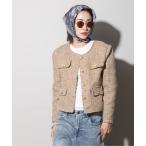 ジャケット ノーカラージャケット ツイードポケットノーカラージャケット レディース