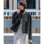ジャケット ノーカラージャケット チェックツイードショートジャケット レディース