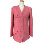 シャネル CHANEL ノーカラーツイードジャケット P64572 ピンク ウール ノーカラージャケット レディース 中古