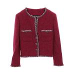 CHANEL シャネル ノーカラー ジャケット レッド ツイード 38 P75484V60450