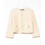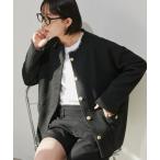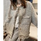 ジャケット ノーカラージャケット 金釦ツイードノーカラーショートジャケット レディース