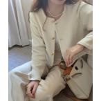 ジャケット ノーカラージャケット パイピング ツイード ライク 金ボタン ジャケット レディース
