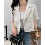 ジャケット ノーカラージャケット ツイード風半袖ジャケットレディース韓国風 レディース