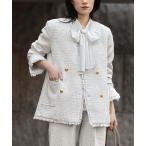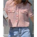 ブラウス シャツ ゴールド釦サマーツイードジャケットブラウス レディース
