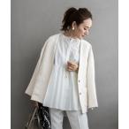 ジャケット ノーカラージャケット ツイード風薄手半袖ジャケット レディース
