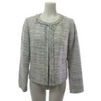 ジャスグリッティー JUSGLITTY ノーカラージャケット ツイード 総裏地 ウール 2 M グレー 黒 ブラック /YK レディース
