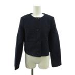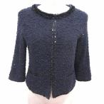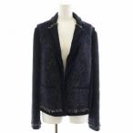 パオラフラーニ PAOLA FRANI ジップアップ ツイード ノーカラージャケット 42 ネイビー /ES ■OS レディース