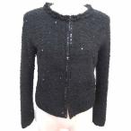 ロペ ROPE ノーカラージャケット ツイード 総裏地 スパンコール 9 M 黒 ブラック /YK レディース