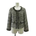 アナイ ANAYI ノーカラージャケット ツイード 総裏地 38 M 黒 ブラック /AU レディース