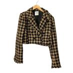 エプローヴ Eprouve ノーカラージャケット ツイード 総裏地 M 黒 ブラック 白 ホワイト 金色 ゴールドカラー /MS レディース