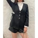 ジャケット ノーカラージャケット ツイードペプラムジャケット レディース