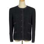CHANEL シャネル ジャケット 02P P19055 ツイード ノーカラー グログラントリミング COCOマーク ボタン アウター レディース 38 紺 黒 仏製