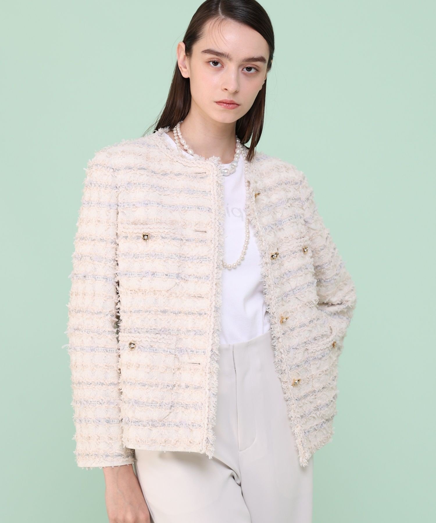 ジャケット ノーカラージャケット フィルムモールツイードジャケット レディース