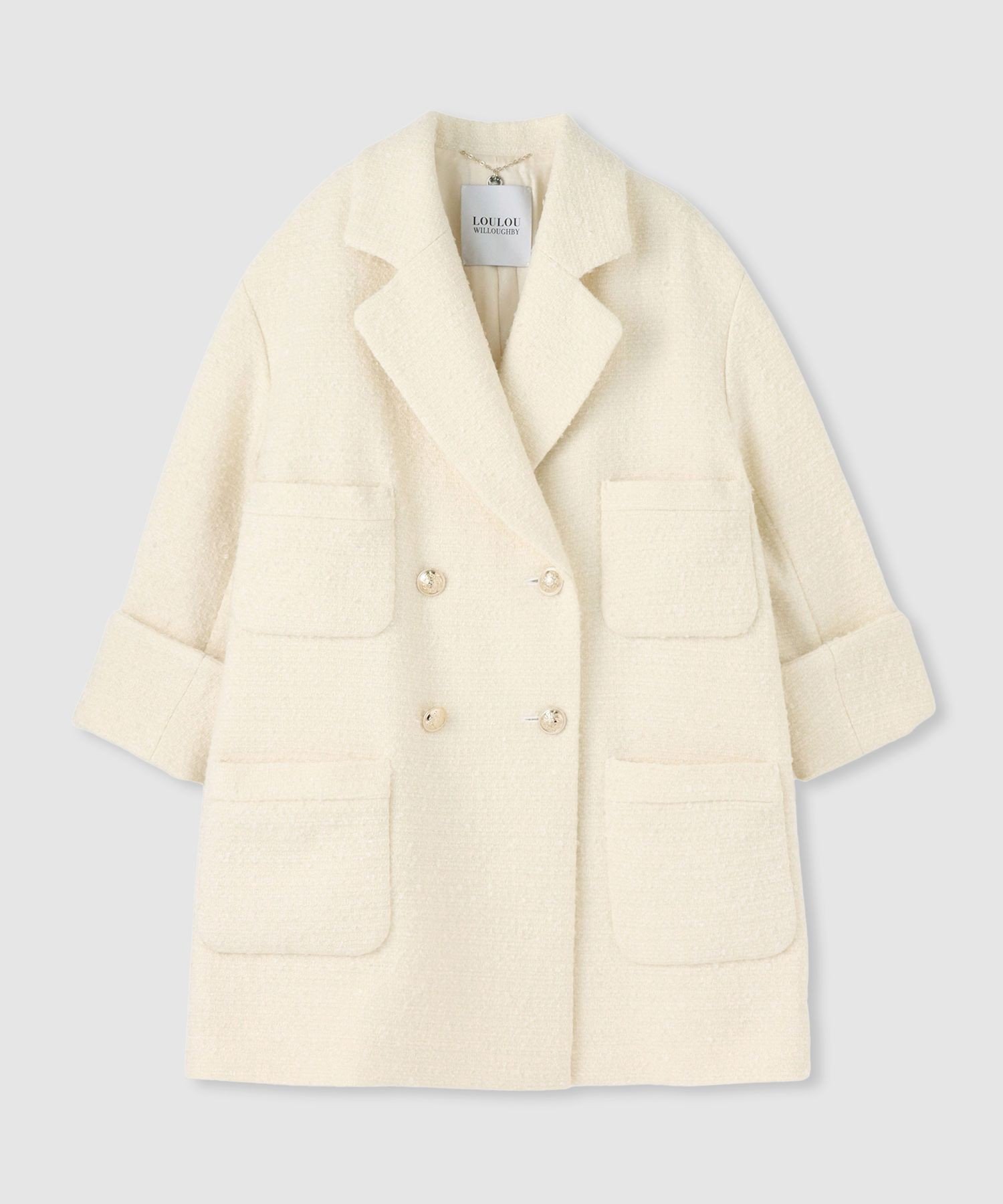 LOULOU WILLOUGHBY 【LOULOU WILLOUGHBY】ツイードダブルミドルコート アルアバイル ジャケット・アウター その他のジャケット・アウター ブラック ホワイト【送料無料】