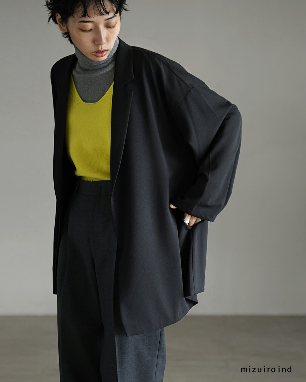 ミズイロインド mizuiro ind テーラード シャツジャケット tailored shirt JK ボタンレス 羽織 フレアシルエット レディース JKT 3-230103 0909 xp15