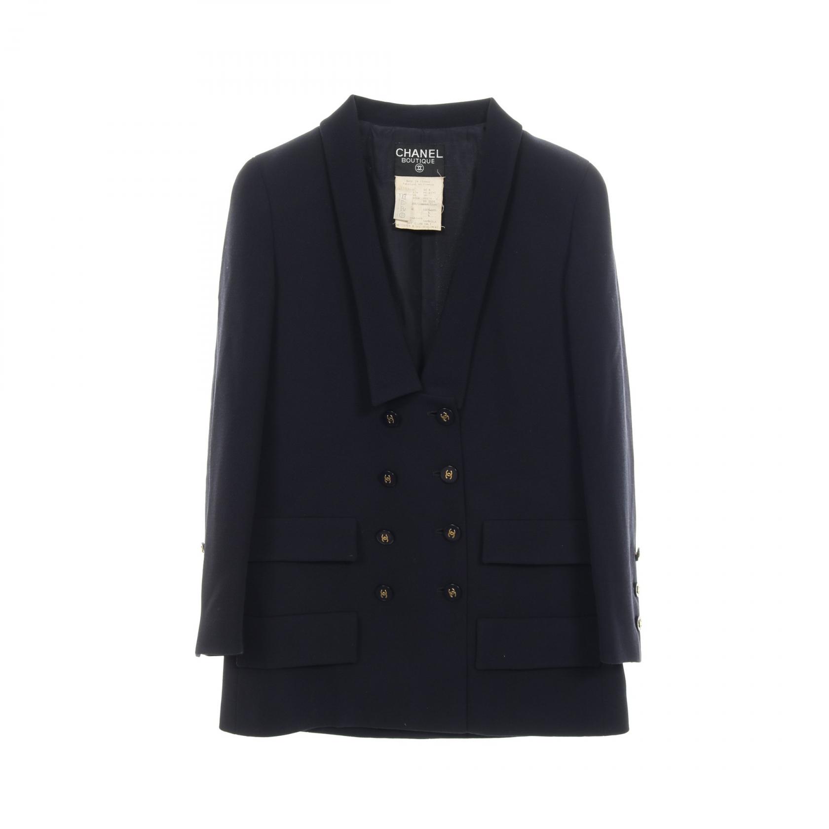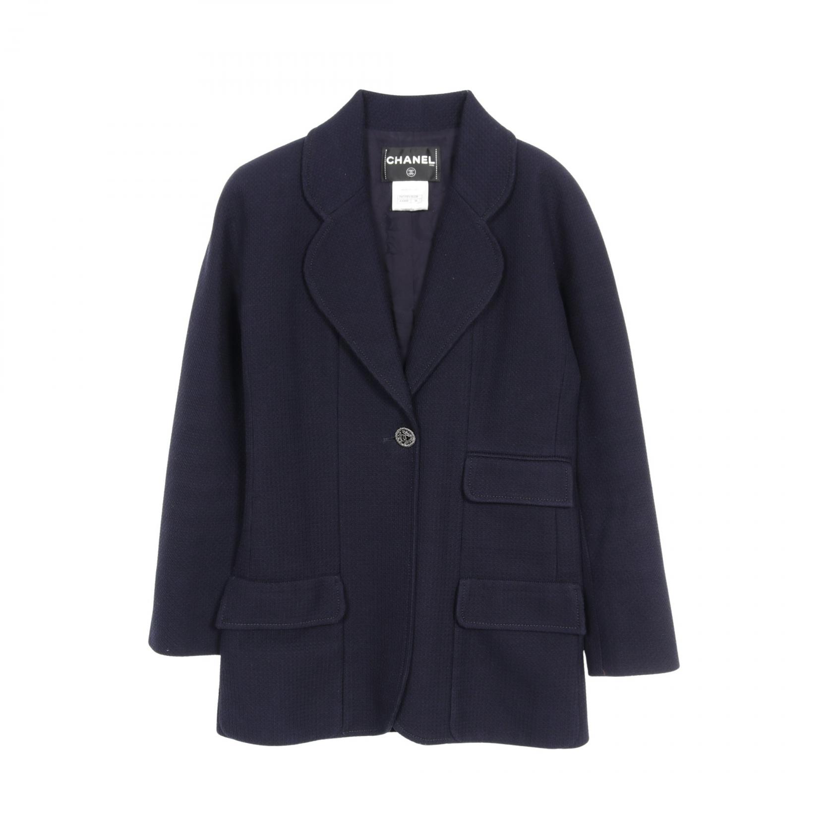 ≪5%OFF&まとめ買い対象≫シャネル CHANEL ココマークボタン テーラードジャケット 衣料品 アウター ウール シルク レディース ネイビー系 【中古】