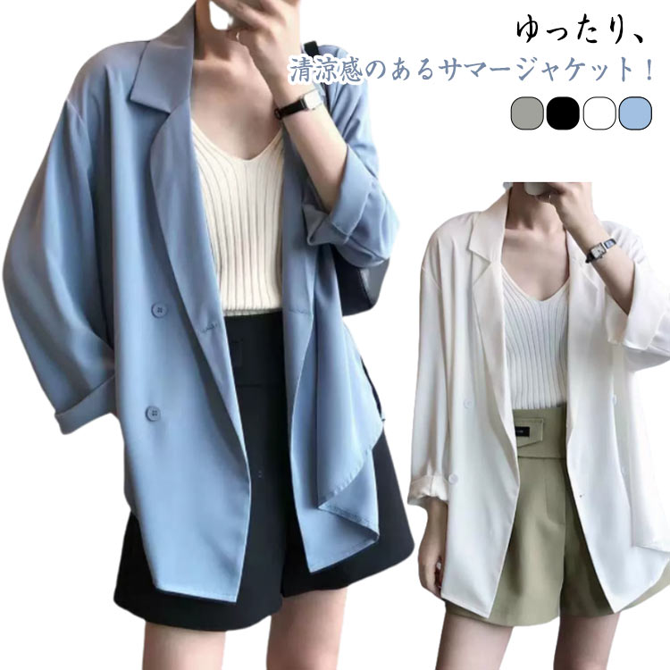 春夏 羽織り 送料無料 カジュアル テーラードジャケット レディース オーバーサイズ 薄手 テーラード ジャケット ライトアウター ジャケット 送料無料 長袖 軽い シンプル 大人 体型カバー サマージャケット L