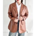 ジャケット テーラードジャケット トレンドコーデに活躍レザーライク切替オーバーサイズテーラードジャケット レディース