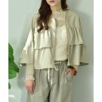 ジャケット ノーカラージャケット フェイクレザーノーカラーティアードジャケット レディース