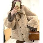 ジャケット ノーカラージャケット ラムファー コート レディース