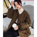 ダウンコート ダウンジャケット ノーカラーミドル丈キルティングジャケット レディース