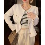 ジャケット ノーカラージャケット 「お気に入り1万突破!」ノーカラーツイードショートジャケット オフィスカジュアル きれいめカジュアル レディース韓国