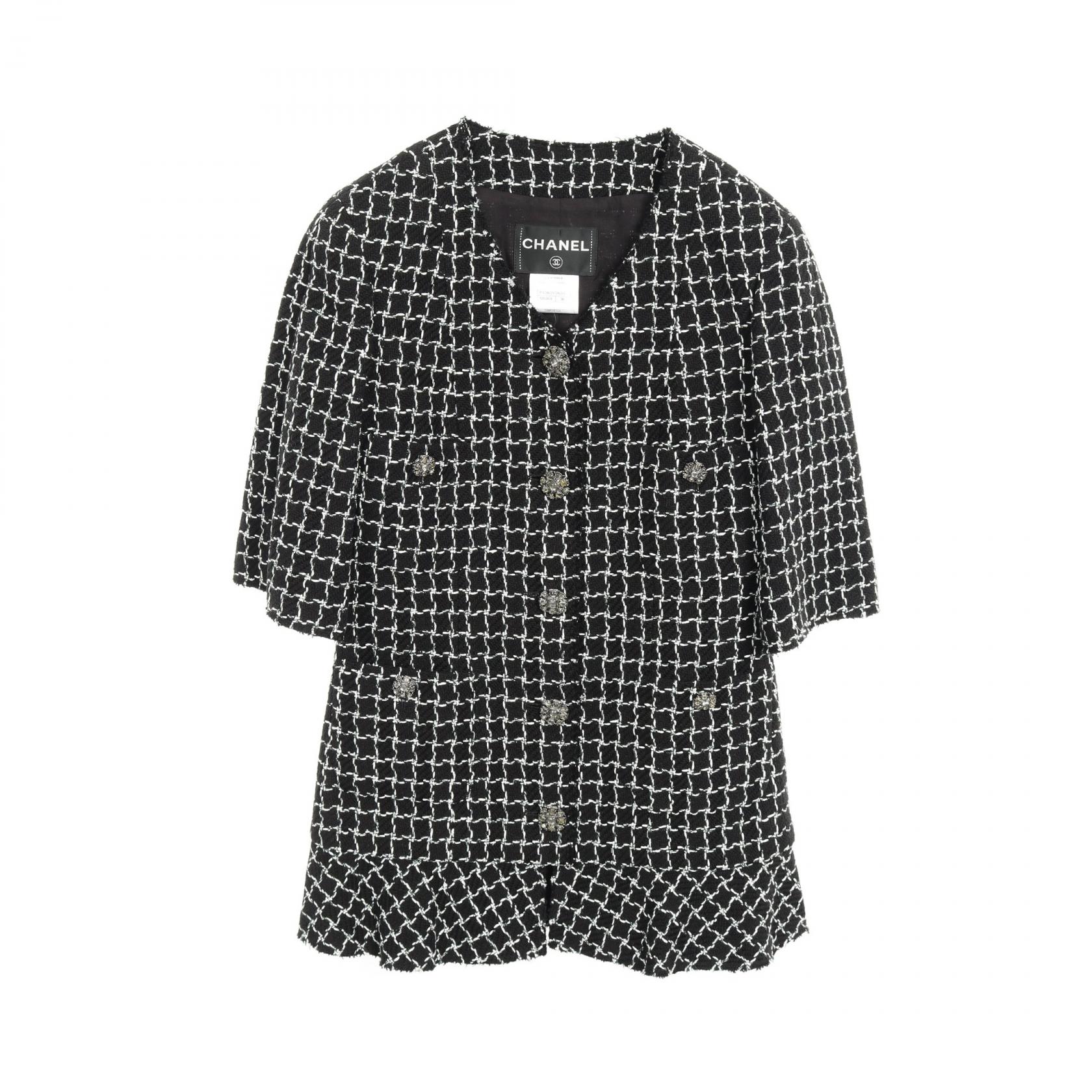 ◆まとめ買い|20%OFF対象◆シャネル CHANEL グリポアボタン ツイード ノーカラージャケット 衣料品 アウター ウール コットン レディース ブラック系 / ホワイト系 P43103V31693 【中古】