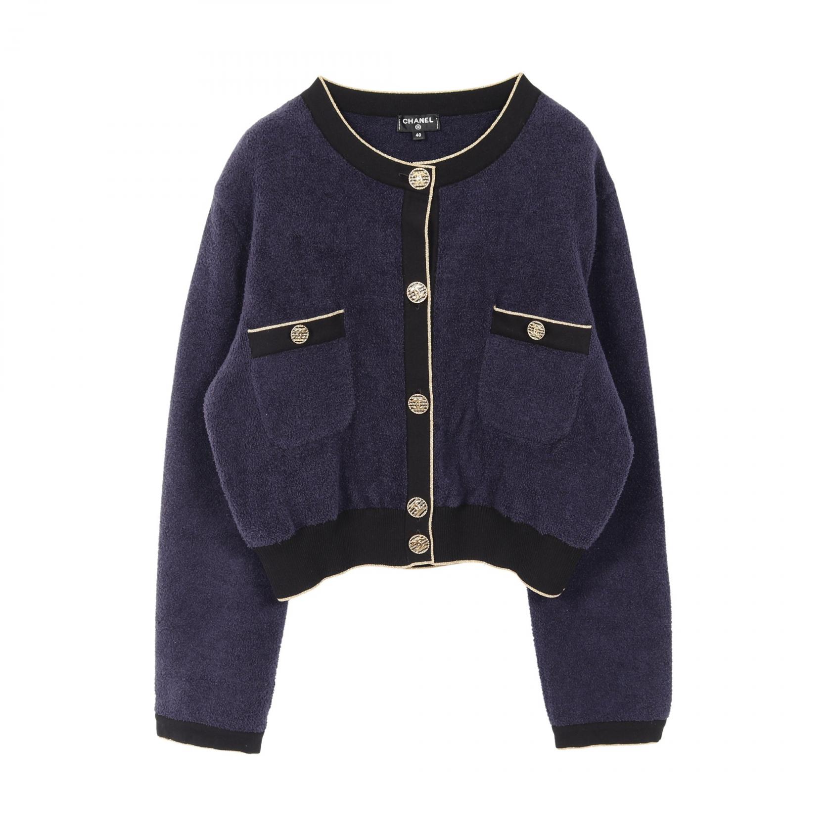 ≪5%OFF&まとめ買い対象≫シャネル CHANEL ココマークボタン ノーカラージャケット 衣料品 アウター コットン レディース ネイビー系 / ブラック系 / ゴールド系 【中古】