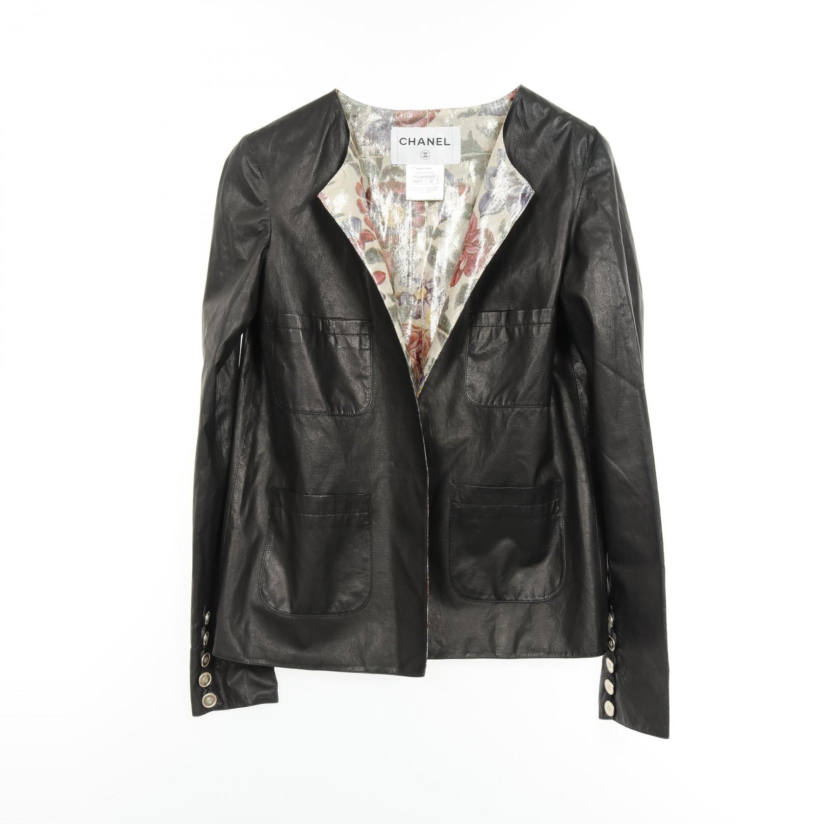 ≪5%OFF&まとめ買い対象≫シャネル CHANEL ノーカラージャケット 衣料品 アウター レザー レディース ブラック系 P50696W05613 【中古】