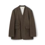 ジャケット ノーカラージャケット アルパカヘリンボーン カラーレスジャケット レディース