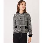 ジャケット ノーカラージャケット グレンチェックツイードショートコート レディース