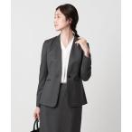 ジャケット ノーカラージャケット 「日本製/通勤スーツ」ウーステッドフラノ カラーレスジャケット レディース
