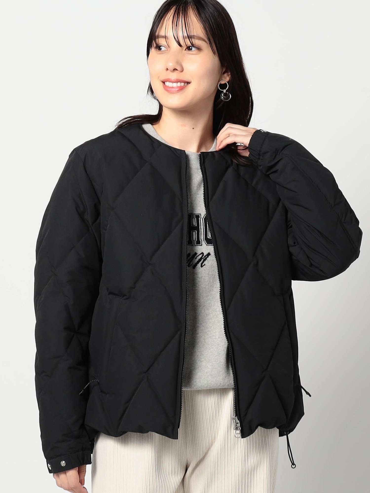 【SALE/10%OFF】Grand PARK NICOLE 【YDOT別注】ノーカラーダウンブルゾン ニコル ジャケット・アウター その他のジャケット・アウター ブラック ベージュ【送料無料】