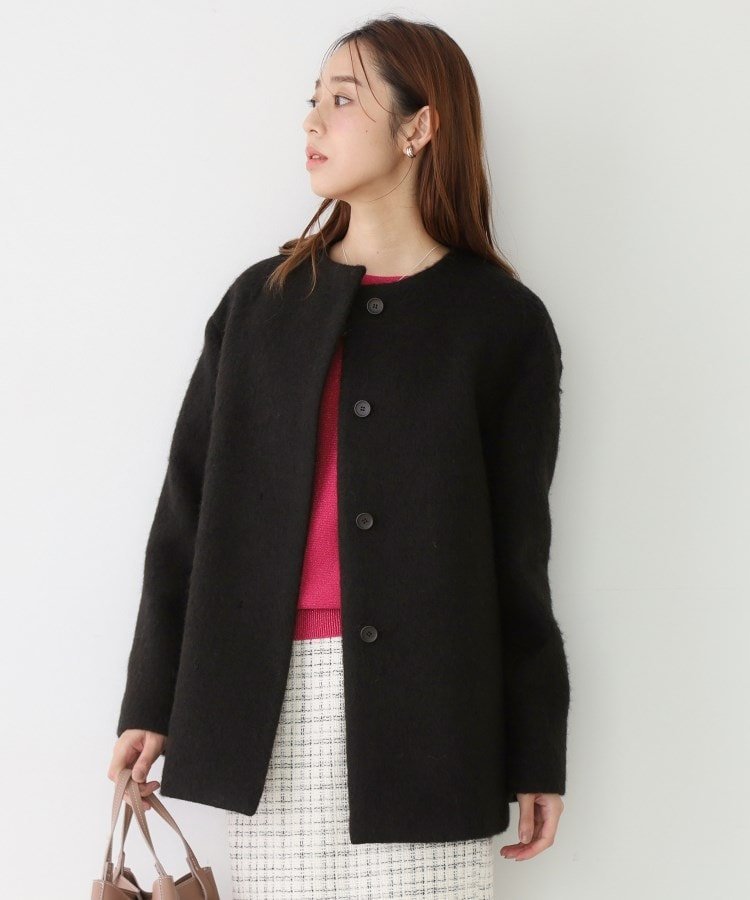 ノーカラーコート コート 「WEB&一部店舗限定」ウールパイルノーカラーショートコート レディース