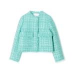 【SALE/30%OFF】BEIGE, TEASEL / ノーカラーツイードショートジャケット ベイジ, ジャケット・アウター ノーカラージャケット グリーン ピンク【送料無料】