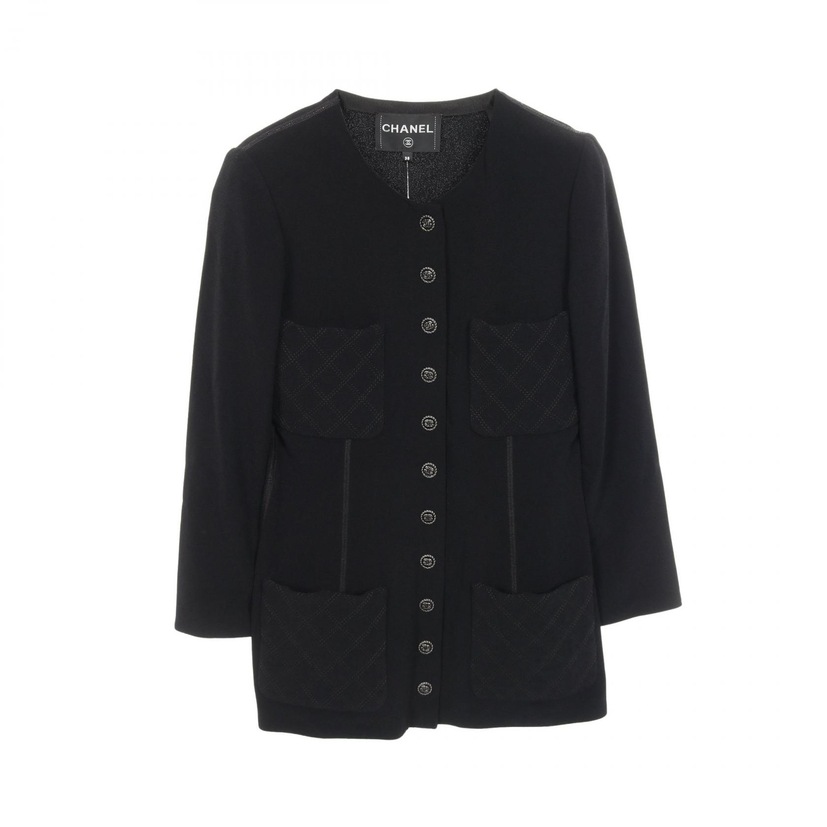 ◆全品5%OFFクーポン対象◆シャネル CHANEL ココマークボタン ノーカラージャケット 衣料品 アウター ビスコース レディース ブラック系 P61292V46593 【中古】