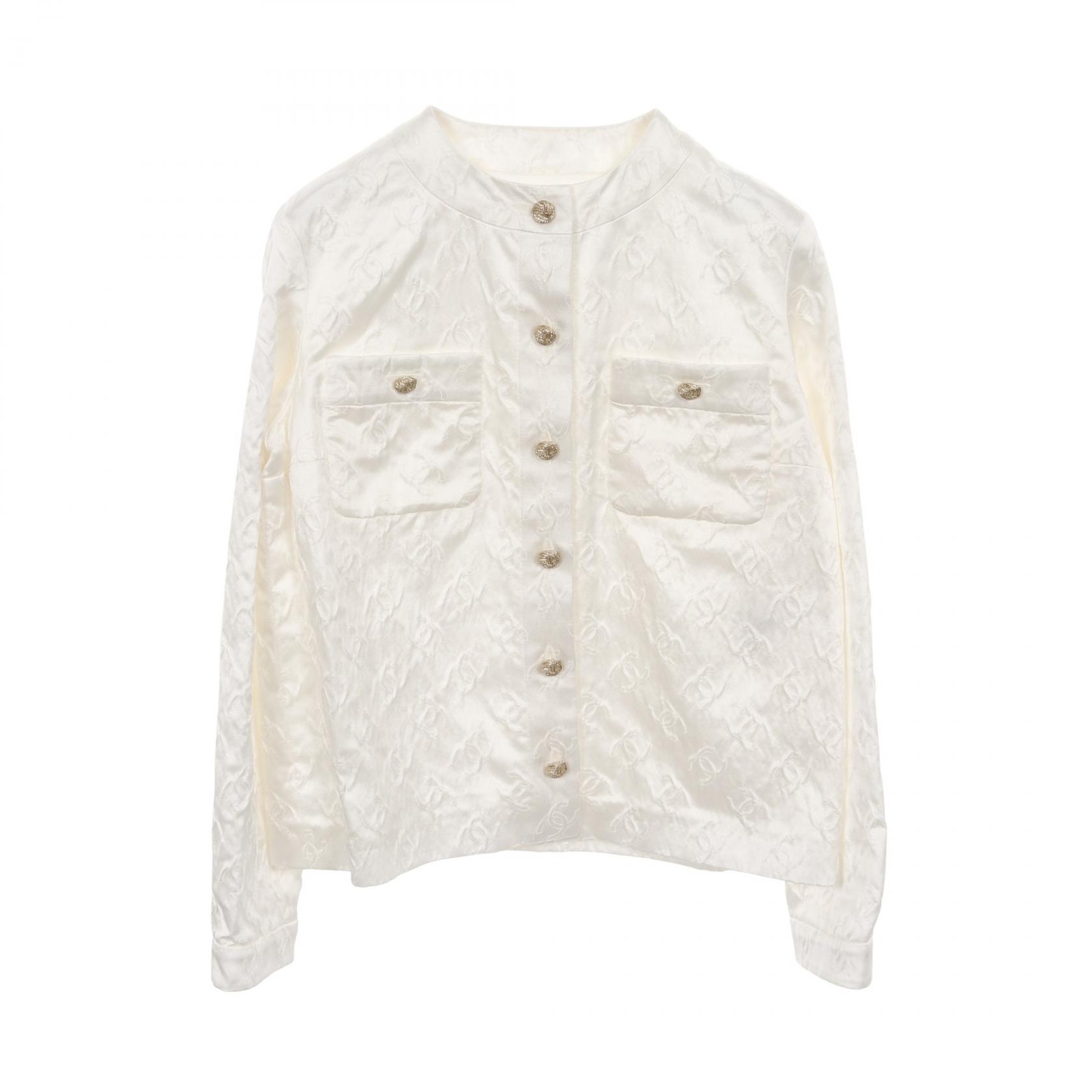 ◆全品5%OFFクーポン対象◆シャネル CHANEL ココマークボタン ノーカラージャケット 衣料品 アウター シルク コットン レディース ホワイト系 P79802V72080 【中古】