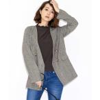 ジャケット ノーカラージャケット モノトーンチェックノーカラーダブルボタンジャケット レディース